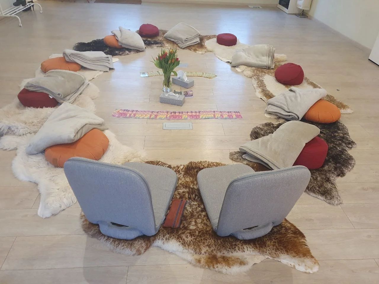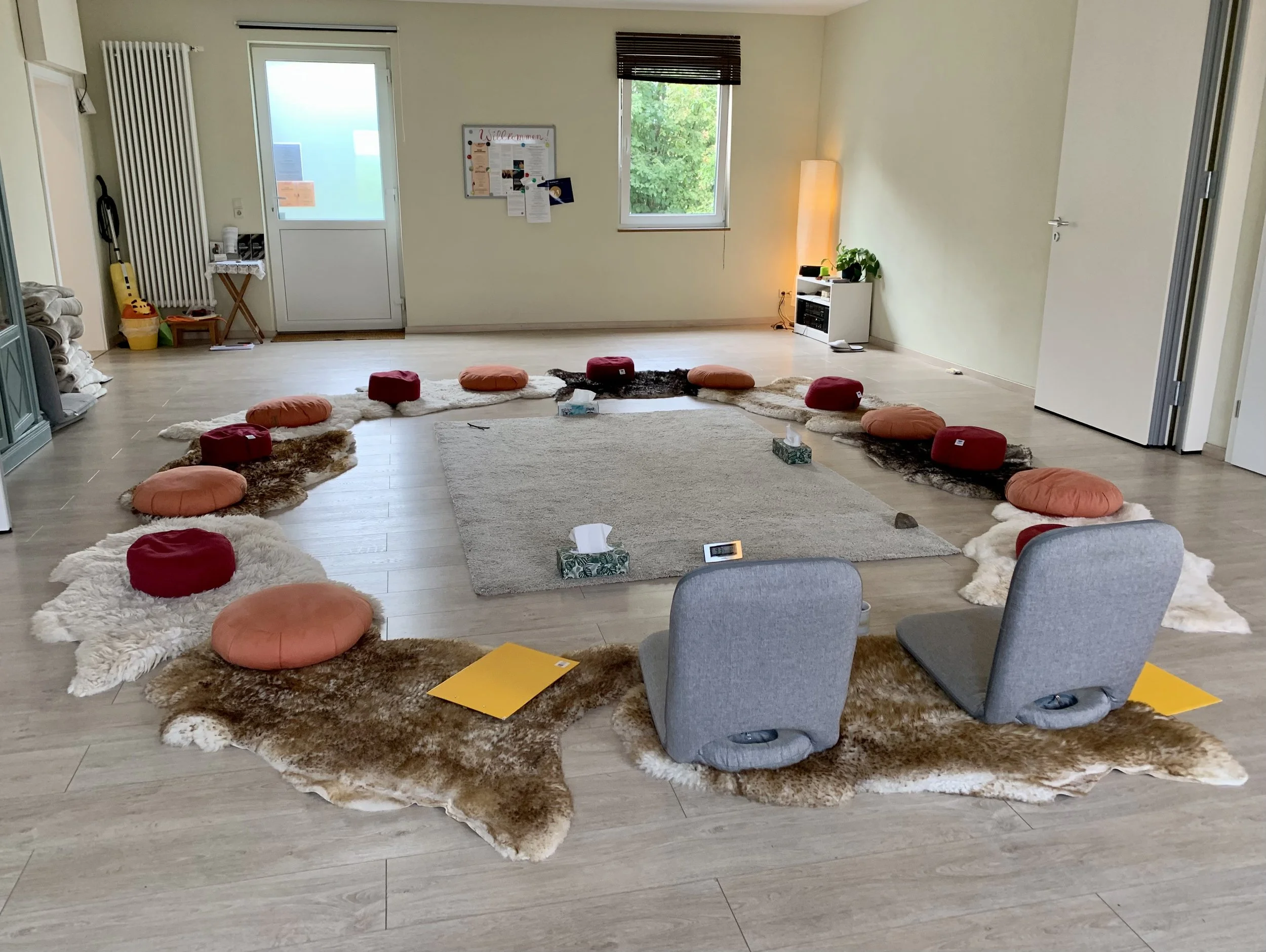 Im Seminar- und Praxisraum finden Yogakurse, Qigong und therapeutische Veranstaltungen statt - ein wichtiger und lebhafter Treffpunkt im Viertel!